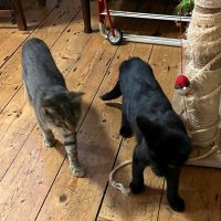 He would get on with another calmer quiet cat and has been with our other FIV cat Liam and they respect each other.